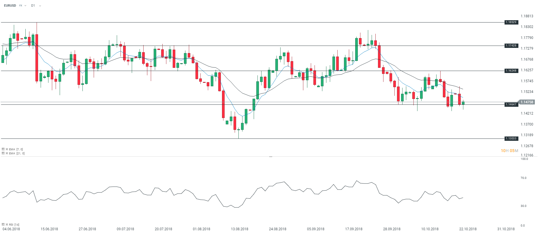 Sur le plan technique, la paire EURUSD évolue toujours aux portes des 1,1460 $ pour 1 €. Evidemment, la toile de fond est fermement baissière en unité de temps journalière (D1). En effet, nous observons sur le graphique ci-dessus que les prix sont capés par les moyennes mobiles à 7 et 21 périodes. Dans le même temps, le RSI est orienté à la baisse et fluctue sous sa zone de neutralité. Pour conclure, nous avons un biais vendeur sur la paire et pensons qu’elle pourrait retrouver le niveau des 1,1430 $ à court terme.