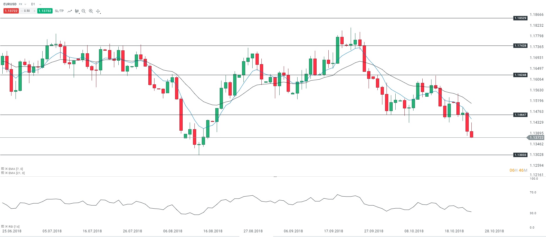 Représentation technique de la paire EURUSD, en D1