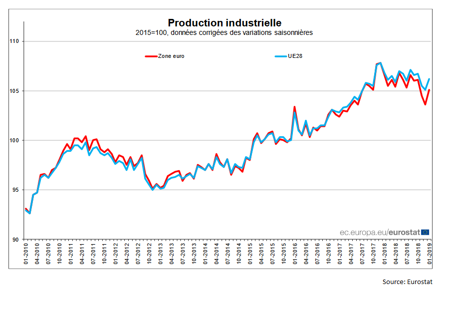 En attendant les IPP (indice des prix à la production) et les commandes de biens durables en provenance des Etats-Unis, la paire EURUSD est rythmée par les données macroéconomiques européennes. Les statistiques ont rassuré. En zone euro, Les ventes au détail pour le mois janvier ont reculé moins fortement que prévu, -1,1 % contre -2,1 % anticipé. La production industrielle, toujours pour le mois de janvier, a augmenté de 1,4%. Les économistes anticipaient une hausse de 1 %.