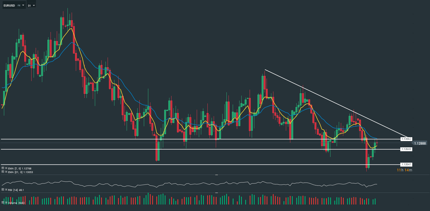Sur le plan technique, en horizon temporel journalier (D1), l’EURUSD poursuit sa hausse initié depuis ces derniers jours. Les cours se sont affranchis, à la hausse, du niveau des 1,1264 $ pour 1 €. La paire est soutenue par la moyenne mobile à 7 périodes. Nous avons un biais neutre sur la paire.
