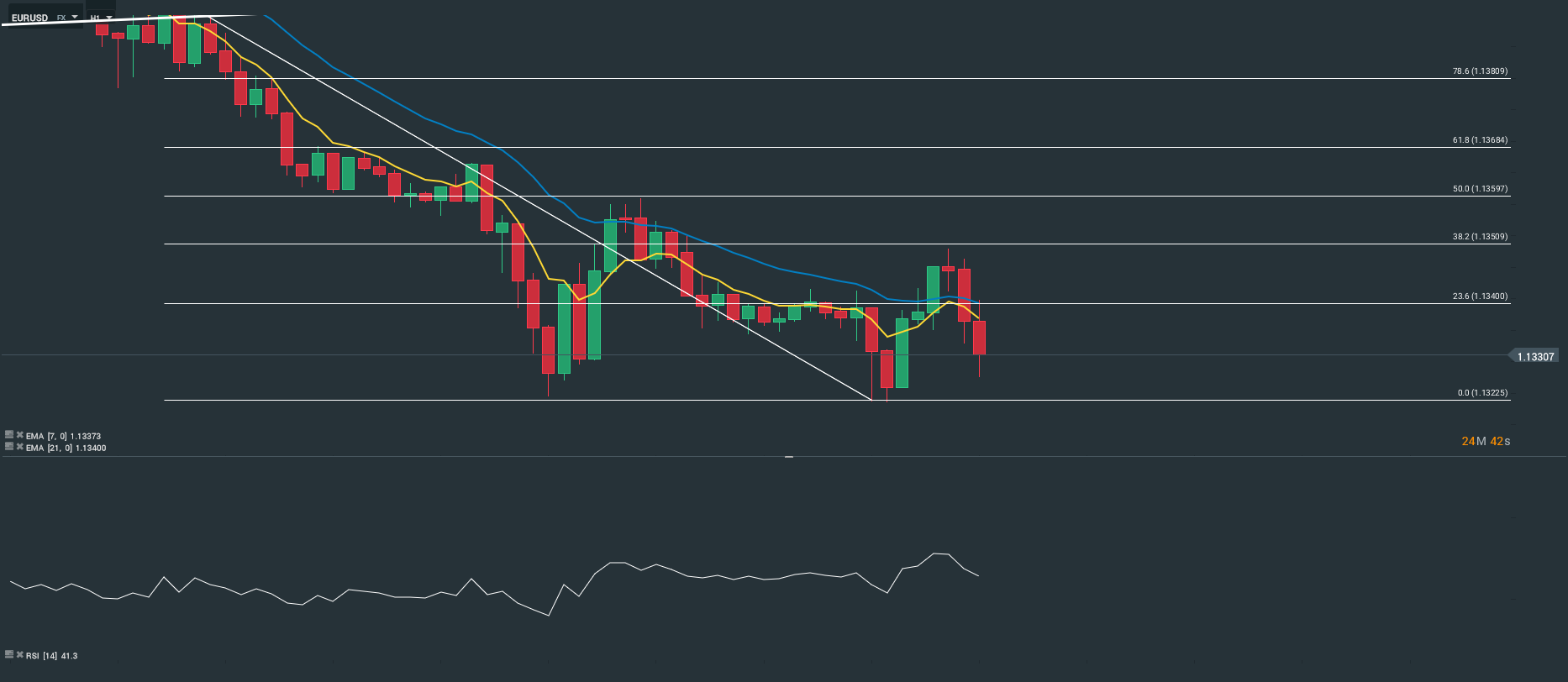Représentation technique de la paire EURUSD en (H1)