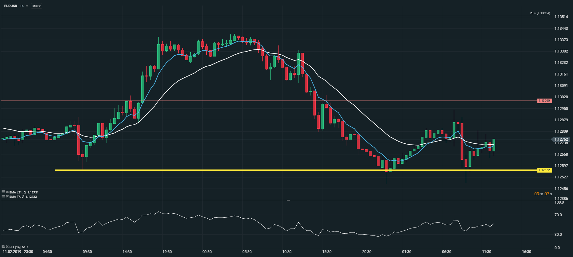 Sur le plan technique, nous remarquons que la paire EURUSD évolue en tendance baissière en unité de temps 30 minutes (M30). En effet, nous observons sur le graphique ci-dessus que les prix sont capés par les moyennes mobiles à 7 et 21 périodes. Dans le même temps, le RSI est orienté à la baisse et oscille sous sa zone de neutralité, autour de 45,5. Pour conclure, nous pensons que la pression baissière devrait s’accélérer ce jour (en direction des 1,1220 $) avec la publication de l’évolution des prix à la production.
