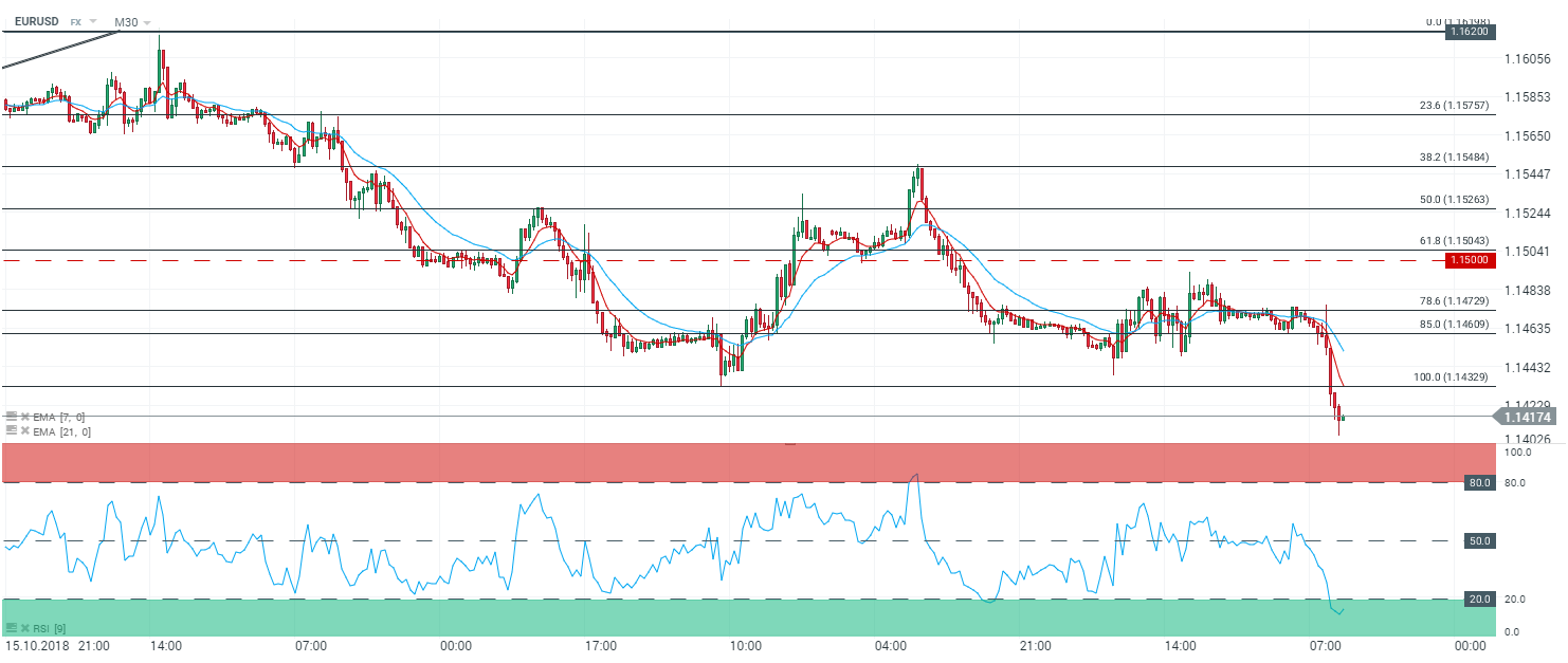 Le vent de panique se poursuit en Europe. La Commission européenne a rejeté hier le budget proposé par l’Italie et demande au gouvernement de Giuseppe Conte de lui soumettre un nouveau budget dans les 3 prochaines semaines. Cependant, le Premier ministre - Giuseppe Conte - et son Vice-Premier ministre - Matteo Salvini - ne l’entendent pas de cette oreille. En effet, il n’y a pas de « Plan B » au budget proposé. L’Italie campe donc sur ces positions, aiguisant un peu plus les inquiétudes des investisseurs. En conséquence, nous assistons à un recul de la monnaie unique face à l’ensemble des devises.