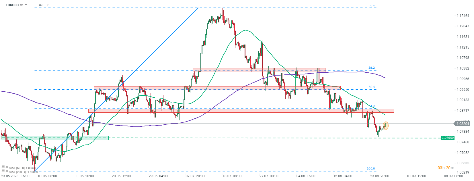 En jetant un œil au graphique EURUSD à l'intervalle H4, on peut voir que la vente massive sur la principale paire de devises semble avoir été stoppée dans la zone des 1,0765 - du moins pour le moment. La paire se négocie près des sommets quotidiens dans la zone des 1,0820 et si le sentiment actuel persiste, la zone de résistance des 1,0880, marquée par un retracement de 61,8%, pourrait devenir la prochaine cible pour les acheteurs. Les traders doivent garder à l'esprit qu'en plus des données d'inflation mentionnées précédemment en provenance d'Europe, le rapport NFP des États-Unis pour août sera également publié cette semaine et cela pourrait ajouter à la volatilité de la paire.