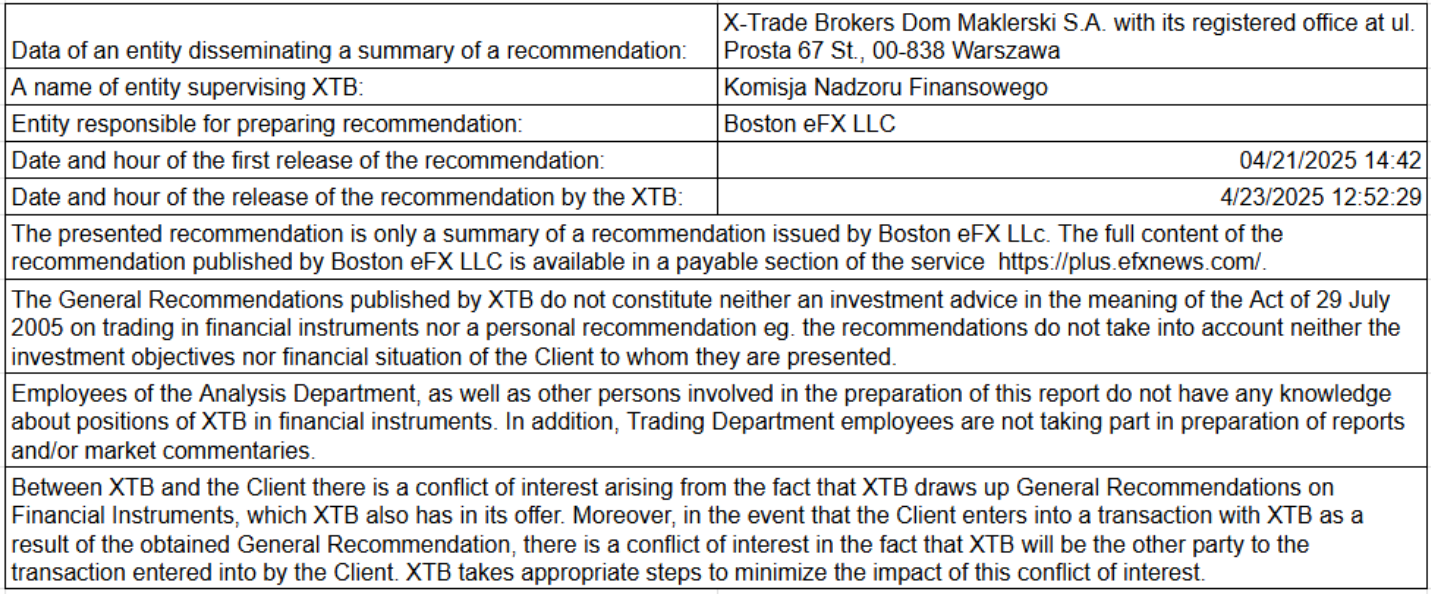 "Ce contenu est une communication marketing au sens de l'art. 24, paragraphe 3, de la directive 2014/65 /UE du Parlement européen et du Conseil du 15 mai 2014 concernant les marchés d'instruments financiers et modifiant la directive 2002/92 /CE et la directive 2011/61 /UE (MiFID II). La communication marketing n'est pas une recommandation d'investissement ou une information recommandant ou suggérant une stratégie d'investissement au sens du règlement (UE) n°596/2014 du Parlement européen et du Conseil du 16 avril 2014 sur les abus de marché (règlement sur les abus de marché) et abrogeant la directive 2003/6 / CE du Parlement européen et du Conseil et directives 2003/124 / CE, 2003/125 / CE et 2004/72 / CE de la Commission et règlement délégué (UE) 2016/958 de la Commission du 9 mars 2016 complétant le règlement (UE) n°596/2014 du Parlement européen et du Conseil en ce qui concerne les normes techniques de réglementation relatives aux modalités techniques de présentation objective de recommandations d'investissement ou d'autres informations recommandant ou suggérant une stratégie d'investissement et pour la divulgation d'intérêts particuliers ou d'indications de conflits d'intérêt ou tout autre conseil, y compris dans le domaine du conseil en investissement, au sens de l'article L321-1 du Code monétaire et financier. L’ensemble des informations, analyses et formations dispensées sont fournies à titre indicatif et ne doivent pas être interprétées comme un conseil, une recommandation, une sollicitation d’investissement ou incitation à acheter ou vendre des produits financiers. XTB ne peut être tenu responsable de l’utilisation qui en est faite et des conséquences qui en résultent, l’investisseur final restant le seul décisionnaire quant à la prise de position sur son compte de trading XTB. Toute utilisation des informations évoquées, et à cet égard toute décision prise relativement à une éventuelle opération d’achat ou de vente de CFD, est sous la responsabilité exclusive de l’investisseur final. Il est strictement interdit de reproduire ou de distribuer tout ou partie de ces informations à des fins commerciales ou privées. Les performances passées ne sont pas nécessairement indicatives des résultats futurs, et toute personne agissant sur la base de ces informations le fait entièrement à ses risques et périls. Les CFD sont des instruments complexes et présentent un risque élevé de perte rapide en capital en raison de l'effet de levier. 71% de comptes d'investisseurs de détail perdent de l'argent lors de la négociation de CFD avec ce fournisseur. Vous devez vous assurer que vous comprenez comment les CFD fonctionnent et que vous pouvez vous permettre de prendre le risque probable de perdre votre argent. Avec le Compte Risque Limité, le risque de pertes est limité au capital investi."
