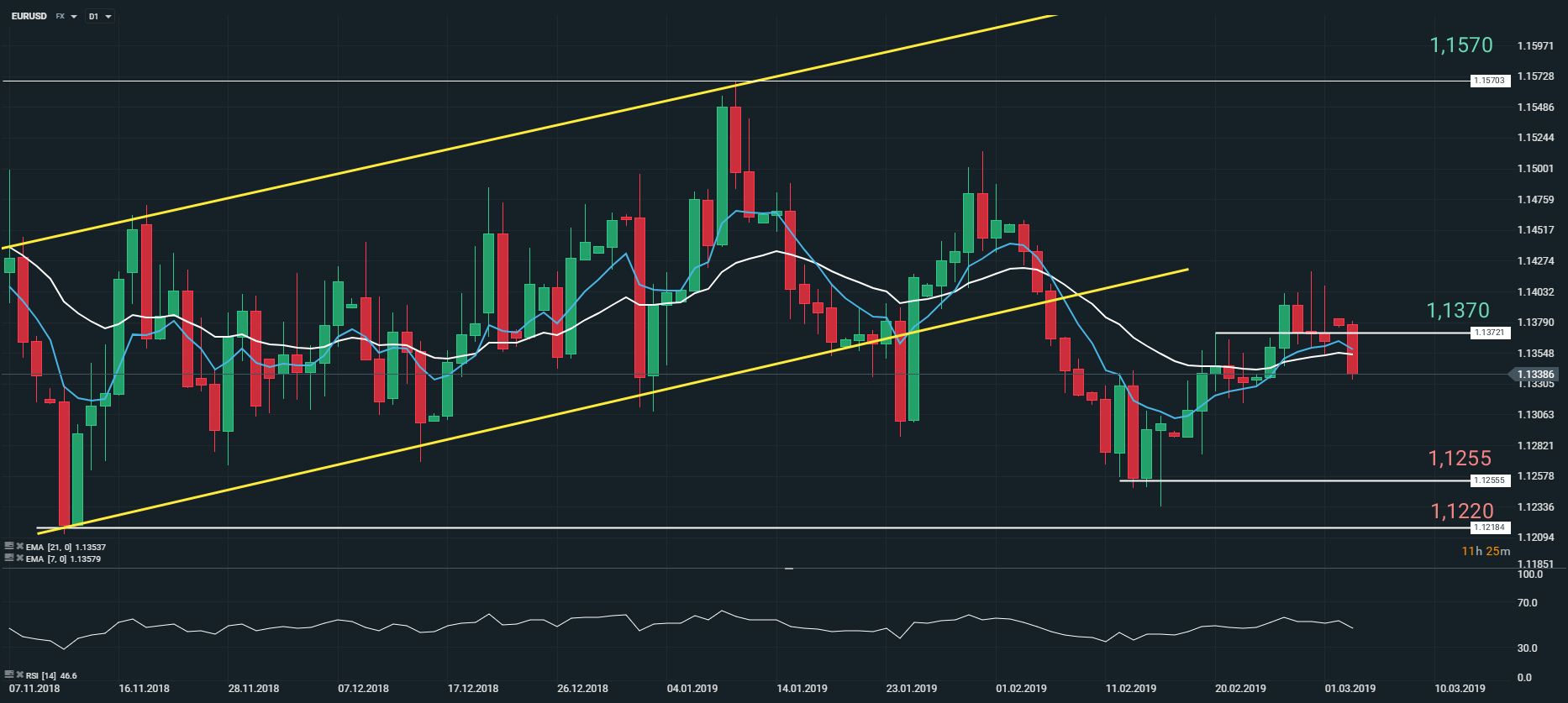 Représentation technique de la paire EURUSD, en D1