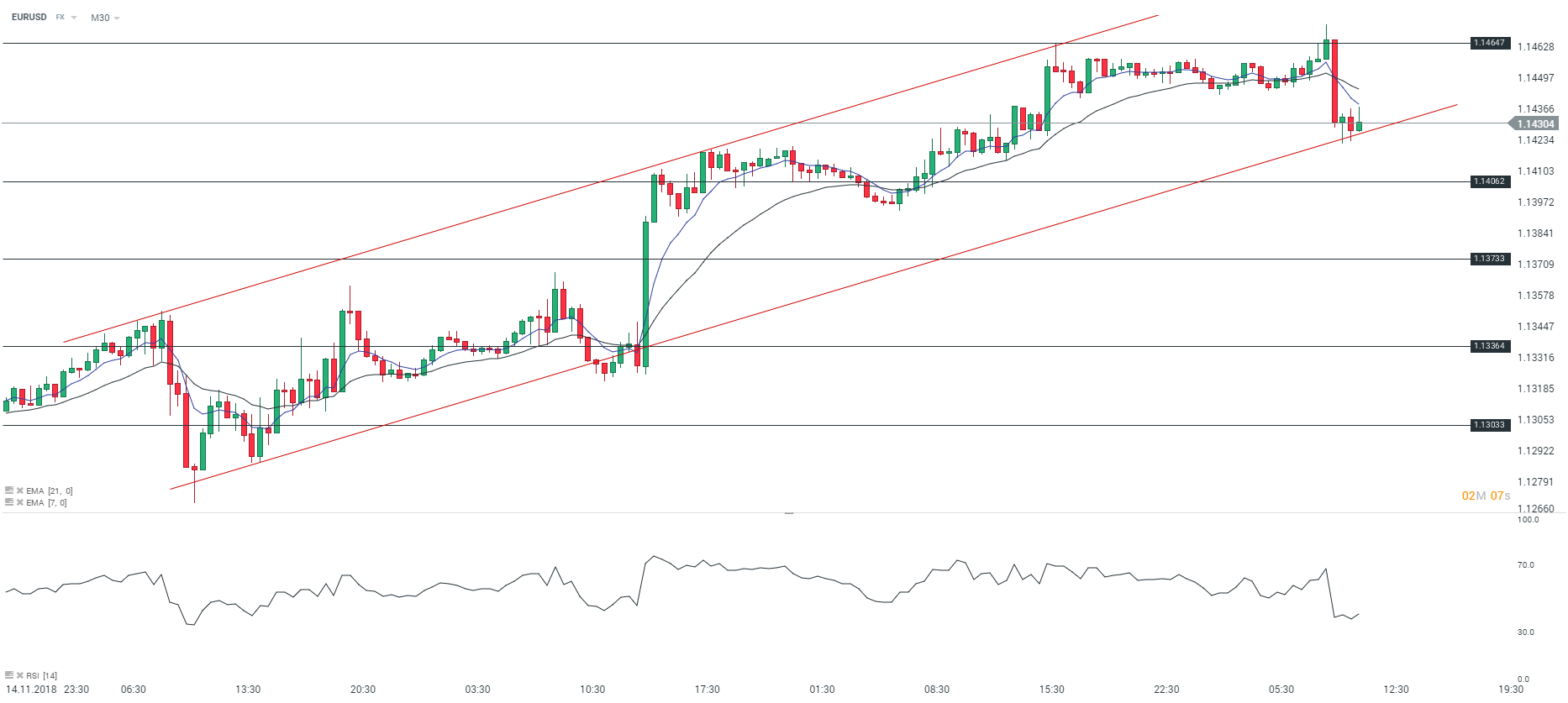 Représentation technique de la paire EURUSD, en M30