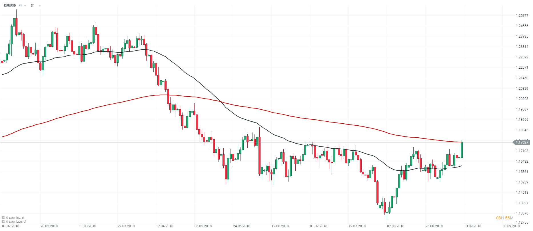 Représentation technique de la paire EURUSD, en D1