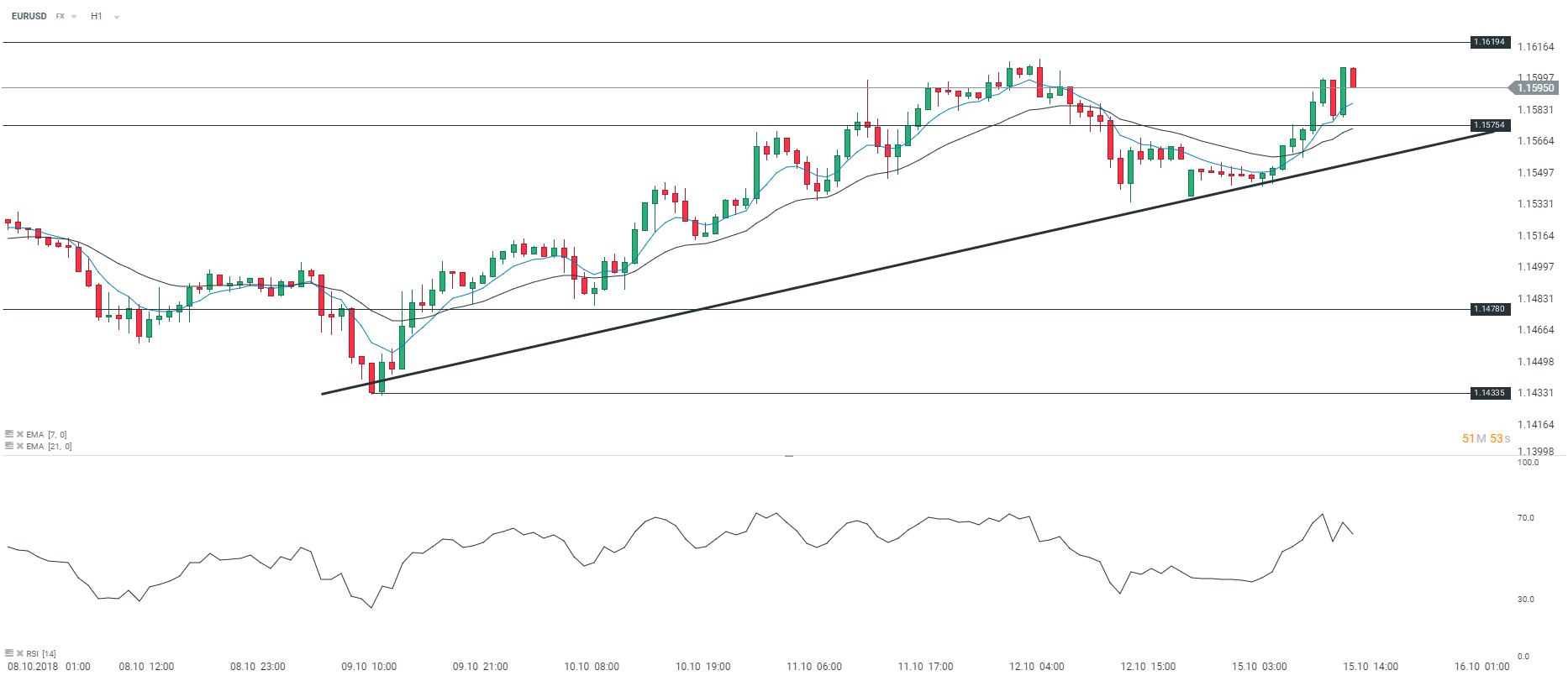 D’un point de vue technique, la paire EURUSD évolue en tendance haussière en unité de temps horaire (H1). En effet, nous observons sur le graphique ci-dessus que les prix sont soutenus par les moyennes mobiles à 7 et 21 périodes. De plus, le RSI est orienté à la hausse et oscille au-dessus de sa zone de neutralité, autour de 66,2. En dépit du contexte technique, nous conservons un biais prudent sur la paire EURUSD et anticipons une période de consolidation.