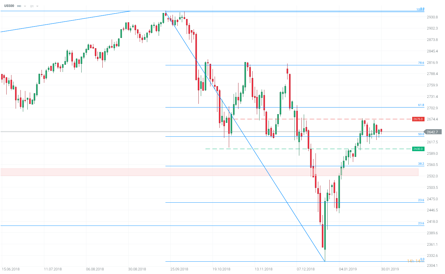 Des indices américains tels que le S&P 500 (US500) ont retrouvé des couleurs de manière spectaculaire au mois de janvier. Les attentes autour d’une Fed plus accommodante ont été parmi les principales raisons de ce regain d'optimisme. C’était un espoir, c’est maintenant un délai de livraison pour la Fed. Un manque de précision et un propos approximatif pourraient décevoir les investisseurs. Sur le plan technique, nous constatons que la hausse s’est arrêtée sous le niveau des 2 675 points. Il s'agit désormais d'un niveau de résistance.