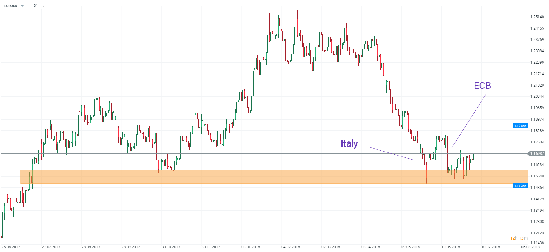 La paire EURUSD a rebondi sur une zone de support clé. Nous attendrons une confirmation de ce rebond. Source : xStation5