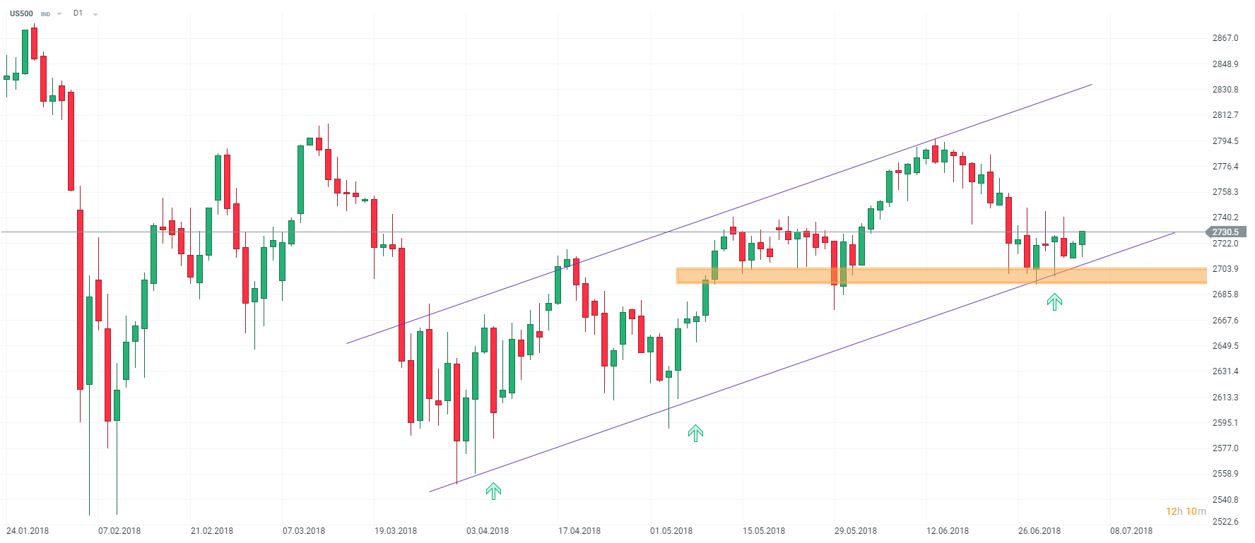 L’indice US500 est parvenu à défendre une zone de support clé et se maintient dans un canal ascendant. Source : xStation5