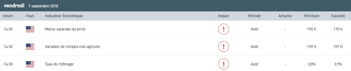 - Le rapport des Non-Farm payroll sur les créations d’emplois du mois d’août