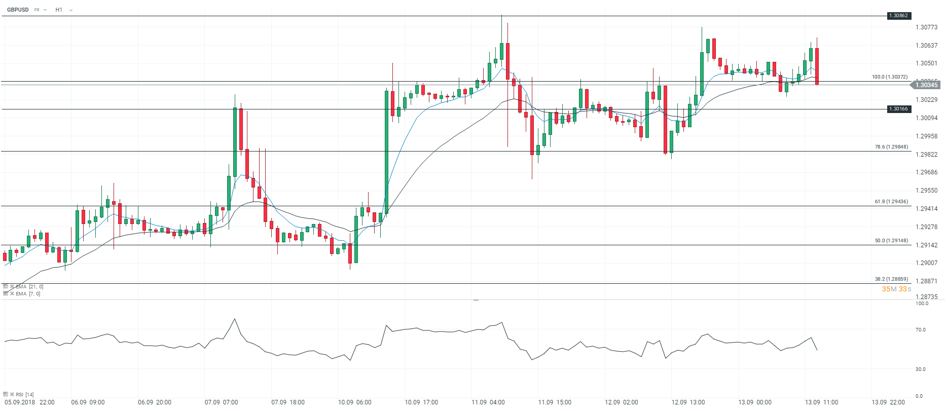 Représentation technique de la paire GBPUSD, en H1