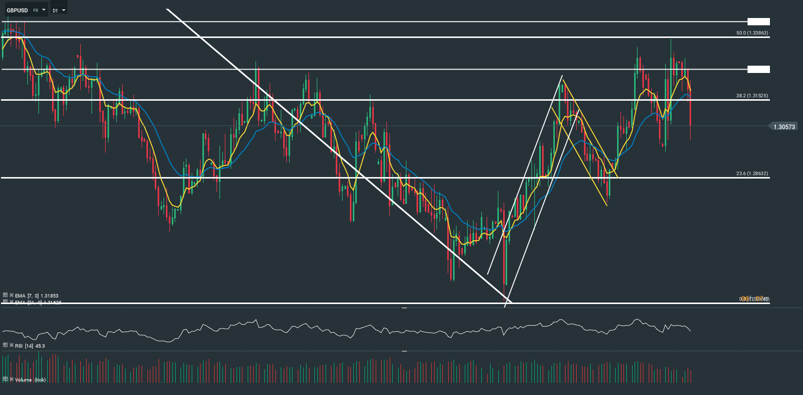 Sur le volet technique, le « câble » (GBPUSD) évolue à la baisse. Après l’envolée de la semaine dernière, les cours retrouvent le niveau des 1,3042 $ pour 1 £. Le seuil des 38,2 % des retracements de Fibonacci a été franchi en séance. Néanmoins, la dépréciation du sterling semble s’atténuer. Après avoir atteint un plus bas dans l’après-midi (1,3005 $ pour 1 livre), la livre s’est de nouveau légèrement appréciée face au billet vert. Pour l’heure, nous avons un biais neutre sur le « câble » .