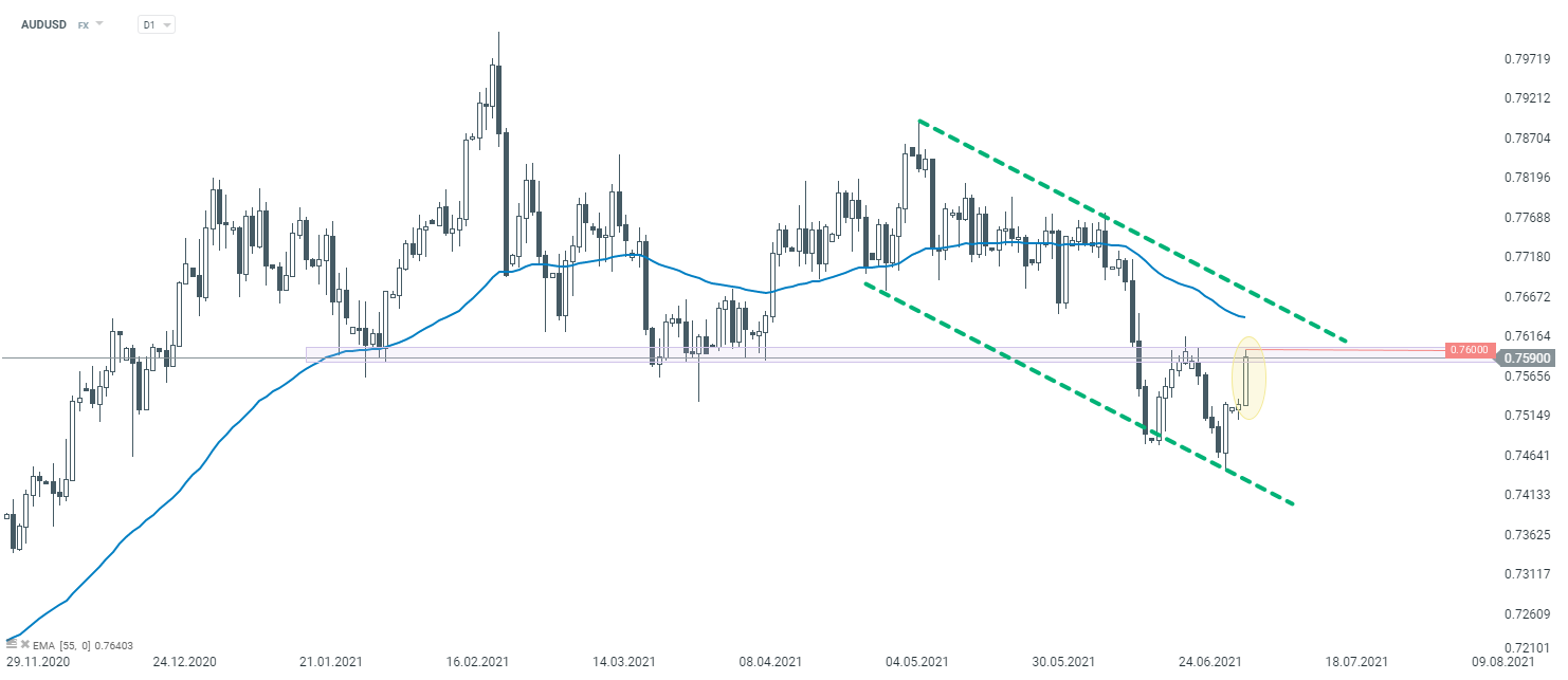 Le dollar australien enregistre des gains importants aujourd'hui dans un contexte d'amélioration du sentiment envers les devises des Antipodes. La paire AUDUSD s'échange en hausse de près de 1 % sur la journée. La Banque de réserve d'Australie a laissé les taux d'intérêt inchangés aujourd'hui, mais a également décéléré le rythme des achats d'obligations. En examinant la paire AUDUSD d'un point de vue technique sur l'intervalle journalier, nous pouvons constater que la paire a atteint une zone de résistance horizontale clé à 0,7600. Si les acheteurs maintiennent leur momentum et poussent la paire au-dessus de cette zone, la prochaine zone de résistance à surveiller se trouve à la limite supérieure du canal descendant.