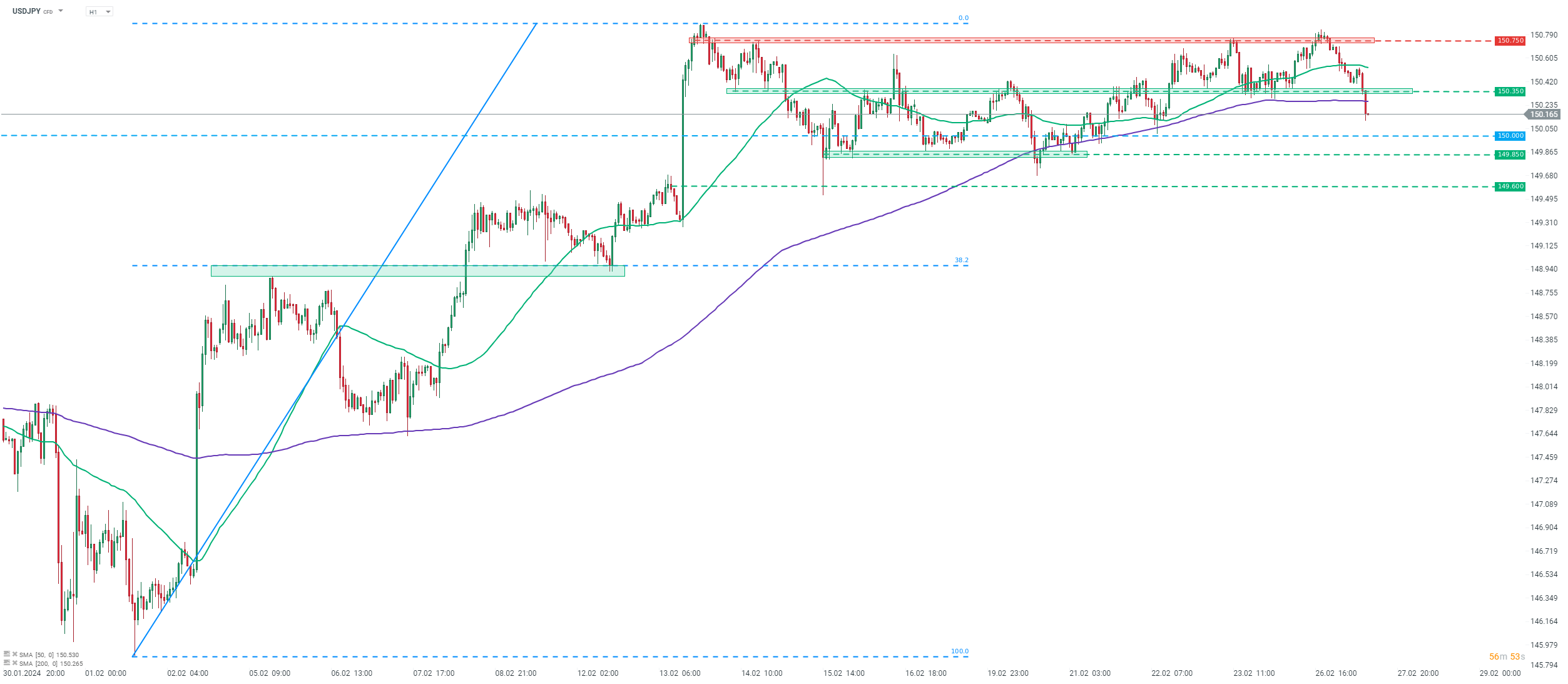 Le yen japonais est l'une des devises les plus performantes du G10 aujourd'hui. Le JPY a fait preuve de force acheteuse suite à la publication du rapport sur l'inflation de l'IPC japonais pour le mois de janvier. Les données ont montré un ralentissement de l'inflation de base de 2,3 % à 2,0 % en glissement annuel, alors que les économistes s'attendaient à un ralentissement à 1,8 % en glissement annuel. L'inflation de l'IPC global a ralenti de 2,6 % à 2,2 % en glissement annuel (attendu 1,9 % en glissement annuel). Une décélération moins importante que prévu de la croissance des prix peut être considérée comme un développement "hawkish". Cela maintient les espoirs du marché que la Banque du Japon abandonne les taux négatifs. Actuellement, le marché monétaire évalue à environ 80 % la probabilité que la BoJ augmente ses taux pour sortir du territoire négatif lors de sa réunion d'avril.