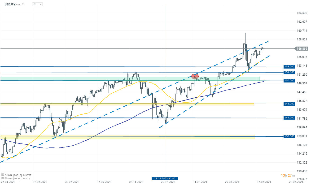 Le yen japonais se consolide autour de ses plus hauts historiques à 157,0000 pour un dollar. Les récentes déclarations des responsables de la BOJ mettent l'accent sur la poursuite de la mobilisation en vue de normaliser la politique monétaire. Cependant, les actions de la banque ne suffisent pas à relancer la demande pour la monnaie japonaise. Les investisseurs n'ont toujours pas de garanties claires quant aux actions ultérieures de la Banque du Japon et cette incertitude contribue à l'affaiblissement continu du yen. Actuellement, sur le graphique de l'intervalle quotidien, nous pouvons observer une formation de biseau ascendant sur l'USDJPY qui peut signaler un renversement potentiel d'une tendance haussière. Cette formation est caractérisée par des lignes de tendance convergentes où la ligne de tendance supérieure (résistance) est ascendante et la ligne de tendance inférieure (support) est ascendante à un angle plus prononcé.