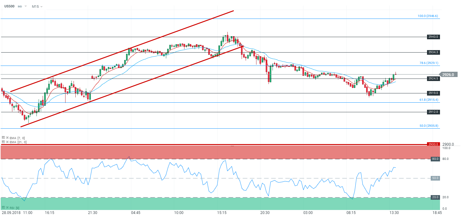 Représentation du S&P500 (US500), en 15 minutes (M15)