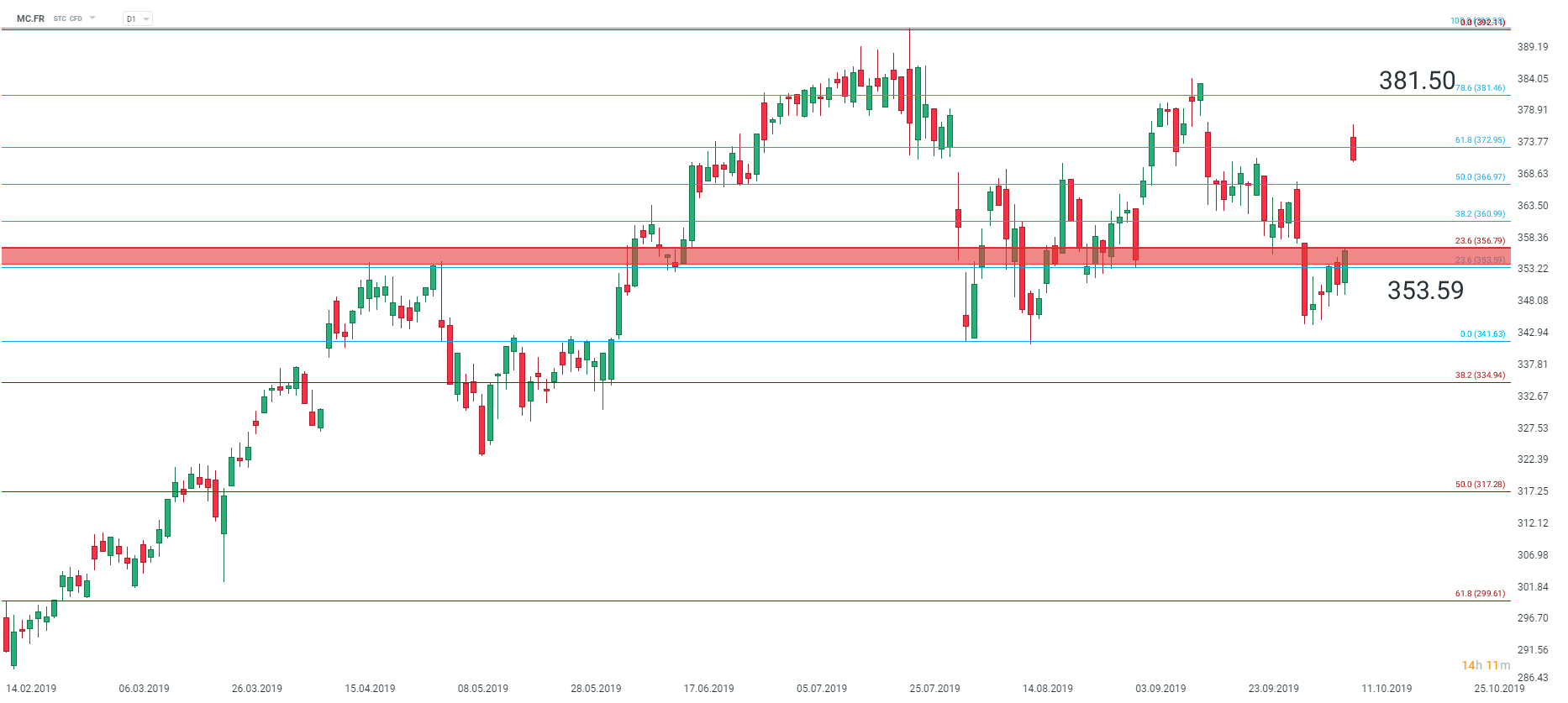 LVMH est à l’honneur aujourd’hui à la bourse de Paris. Suite à la très bonne publication de ses résultats du troisième trimestre 2019, le titre prend la tête du CAC40 et gagne près de 4 %. La maison de luxe française a fait état d’une croissance de 19 % de ses ventes d’articles de mode et de maroquinerie pour le troisième trimestre de l’année, là où le marché s’attendait à 3-4 % de croissance. Cette très bonne surprise vient apaiser les inquiétudes du marché quant aux perturbations rencontrées à Hong Kong (place de marché très importante pour le groupe LVMH). Pour rappel, le titre LVMH progresse de plus de 38 % depuis le début de l’année.