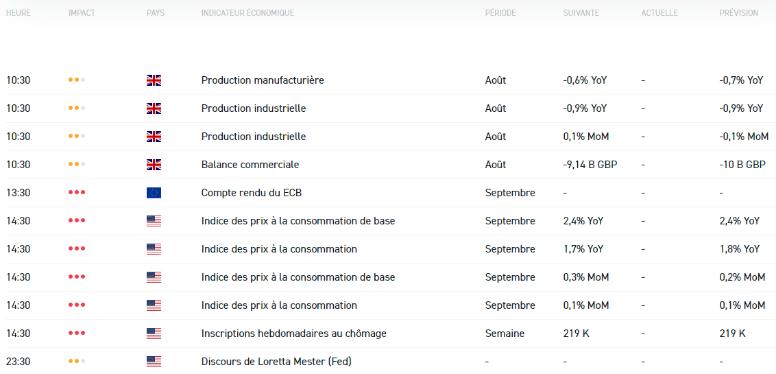 - Production manufacturière et industrielle au Royaume-Uni pour le mois d’août à 10h30