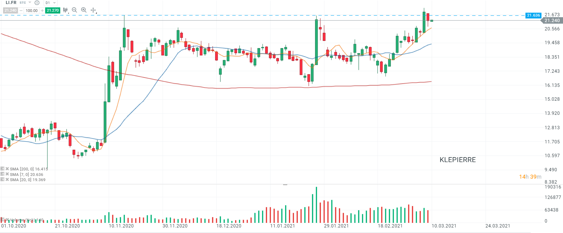 Tout comme son concurrent URW, Klépierre (LI.FR) la foncière spécialisée dans les centres commerciaux souffre toujours des restrictions imposées par le gouvernement français pour lutter contre le covid-19. Malgré l'avancée des programmes de vaccination, aucune perspective de réouverture n'a encore été communiquée.