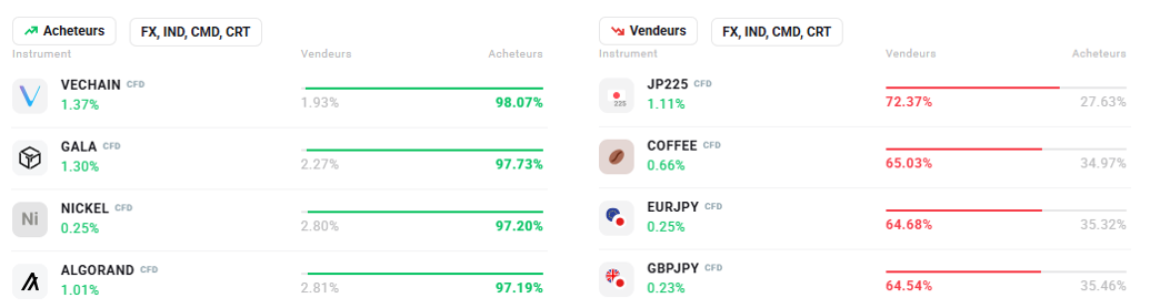 "Ce contenu est une communication marketing au sens de l'art. 24, paragraphe 3, de la directive 2014/65 /UE du Parlement européen et du Conseil du 15 mai 2014 concernant les marchés d'instruments financiers et modifiant la directive 2002/92 /CE et la directive 2011/61 /UE (MiFID II). La communication marketing n'est pas une recommandation d'investissement ou une information recommandant ou suggérant une stratégie d'investissement au sens du règlement (UE) n°596/2014 du Parlement européen et du Conseil du 16 avril 2014 sur les abus de marché (règlement sur les abus de marché) et abrogeant la directive 2003/6 / CE du Parlement européen et du Conseil et directives 2003/124 / CE, 2003/125 / CE et 2004/72 / CE de la Commission et règlement délégué (UE) 2016/958 de la Commission du 9 mars 2016 complétant le règlement (UE) n°596/2014 du Parlement européen et du Conseil en ce qui concerne les normes techniques de réglementation relatives aux modalités techniques de présentation objective de recommandations d'investissement ou d'autres informations recommandant ou suggérant une stratégie d'investissement et pour la divulgation d'intérêts particuliers ou d'indications de conflits d'intérêt ou tout autre conseil, y compris dans le domaine du conseil en investissement, au sens de l'article L321-1 du Code monétaire et financier. L’ensemble des informations, analyses et formations dispensées sont fournies à titre indicatif et ne doivent pas être interprétées comme un conseil, une recommandation, une sollicitation d’investissement ou incitation à acheter ou vendre des produits financiers. XTB ne peut être tenu responsable de l’utilisation qui en est faite et des conséquences qui en résultent, l’investisseur final restant le seul décisionnaire quant à la prise de position sur son compte de trading XTB. Toute utilisation des informations évoquées, et à cet égard toute décision prise relativement à une éventuelle opération d’achat ou de vente de CFD, est sous la responsabilité exclusive de l’investisseur final. Il est strictement interdit de reproduire ou de distribuer tout ou partie de ces informations à des fins commerciales ou privées. Les performances passées ne sont pas nécessairement indicatives des résultats futurs, et toute personne agissant sur la base de ces informations le fait entièrement à ses risques et périls. Les CFD sont des instruments complexes et présentent un risque élevé de perte rapide en capital en raison de l'effet de levier. 71% de comptes d'investisseurs de détail perdent de l'argent lors de la négociation de CFD avec ce fournisseur. Vous devez vous assurer que vous comprenez comment les CFD fonctionnent et que vous pouvez vous permettre de prendre le risque probable de perdre votre argent. Avec le Compte Risque Limité, le risque de pertes est limité au capital investi."