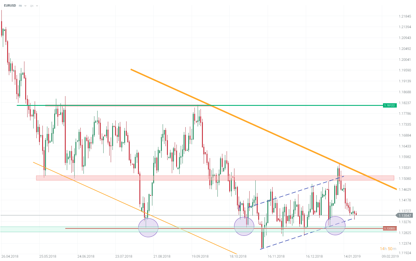 L’EURUSD fait face à des soutiens clés avant la réunion de la BCE. Source : xStation5