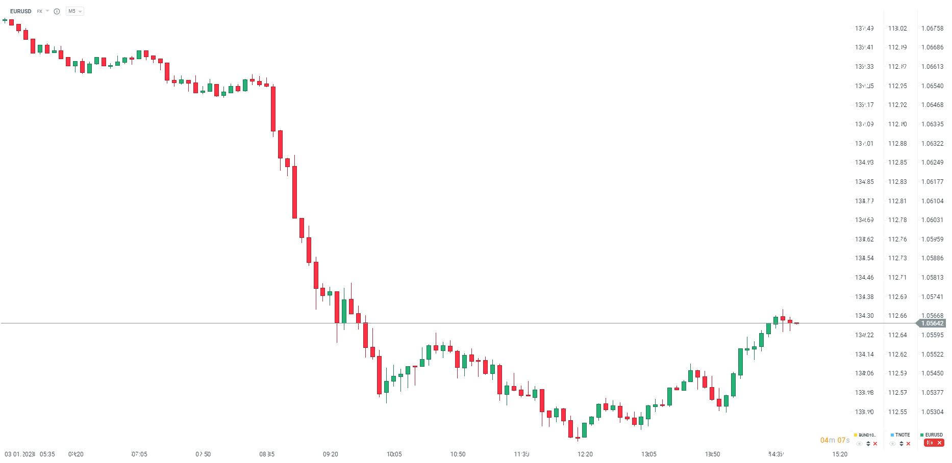 L'euro ne réagit pas, bien que Kazaks signale d'éventuelles hausses plus faibles après le premier trimestre 2023. Source : xStation5