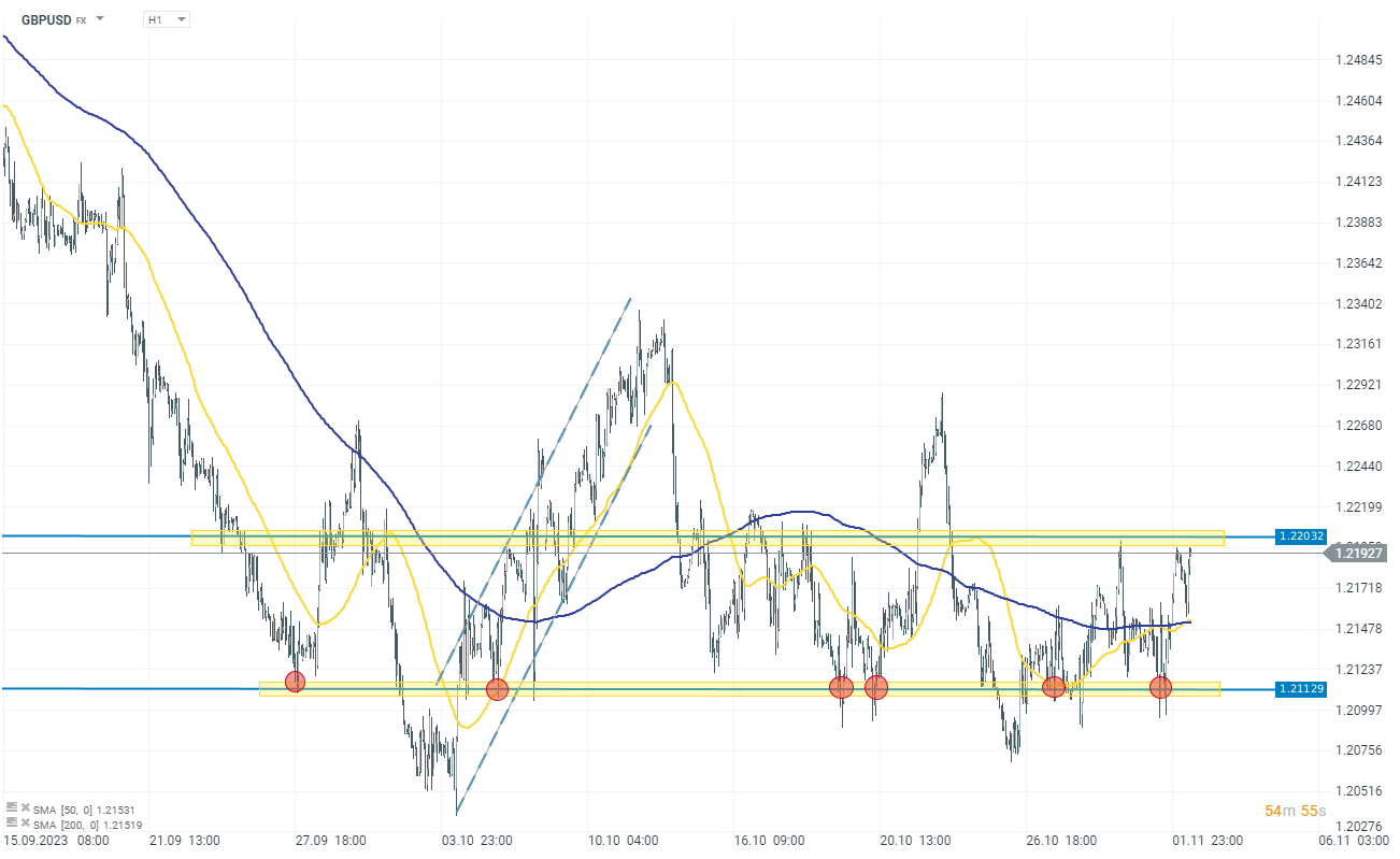 La livre sterling est l'une des monnaies les plus faibles aujourd'hui avant l'annonce de la BoE. Les investisseurs pourraient prendre en compte l'absence de hausse des taux lors de la réunion d'aujourd'hui. En regardant le graphique de la paire GBPUSD, nous constatons que les hausses d'aujourd'hui sont dues à un dollar encore plus faible que la livre. La paire GBPUSD s'approche de la limite supérieure du récent canal de consolidation au niveau de 1,22. Le maintien des taux au niveau actuel et la position dovish de la BoE pourraient entraîner un affaiblissement de la livre et une réaction à la baisse sur le graphique. Dans le cas contraire, nous pourrions observer une rupture du taux depuis la zone au-dessus du niveau de 1,22. Source: xStation 5