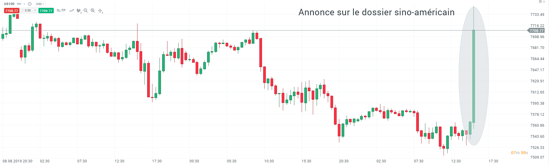 Le Nasdaq bondit de plus de 180 points en quelques minutes suite à l’annonce. Source : xStation5.