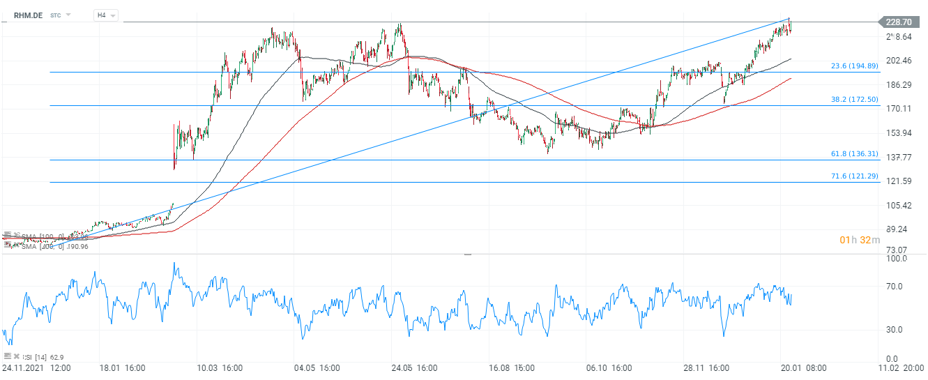 Les actions du plus grand conglomérat de défense allemand Rheinmetall (RHM.DE) gagnent aujourd'hui plus de 3,5 %. La société a relevé ses prévisions de ventes et pousse Berlin à demander plus de grosses commandes. L'année dernière, le conglomérat a affecté 700 millions d'euros à l'augmentation de la capacité de production en vue d'un plan de renforcement de l'armée allemande. Le sentiment a également été amélioré par l'accord de l'Allemagne de livrer des Léopards à l'Ukraine :