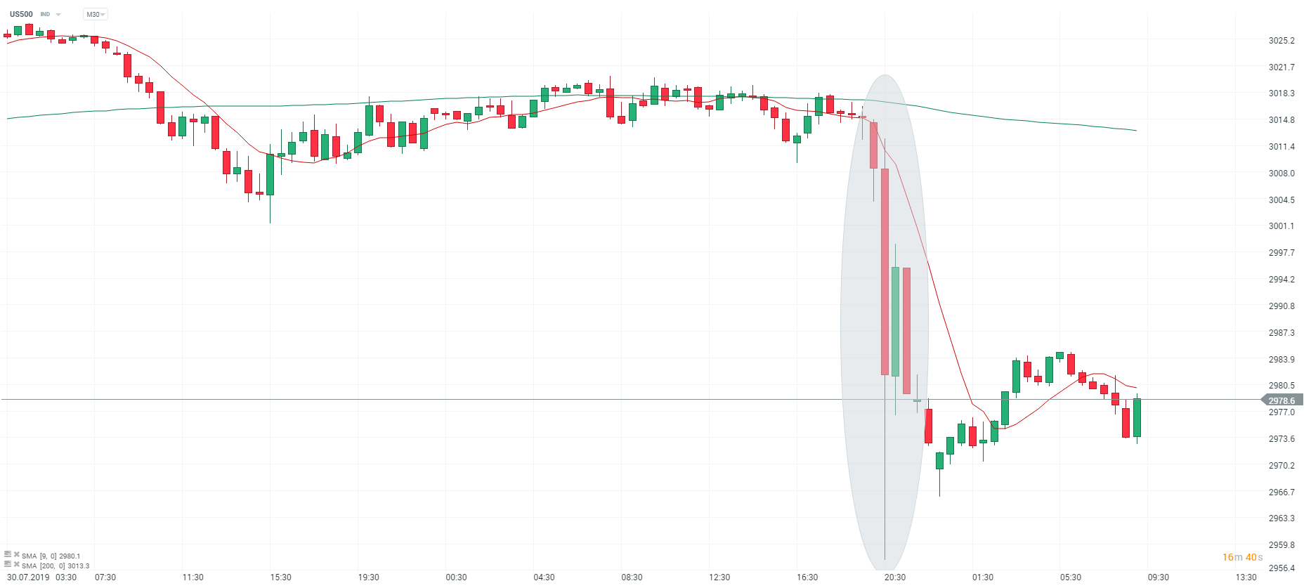 Le S&P500 a perdu 57 points avant que Jerome Powell ne corrige ces propos. Source :xStation5.
