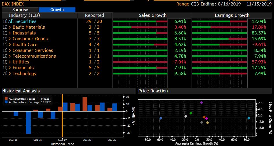 Publication des entreprises composant l’indice Dax. Source : Bloomberg.