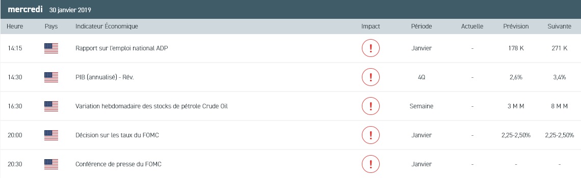 - Le rapport ADP sur les créations d’emplois dans le secteur privé au mois de janvier aux Etats-Unis