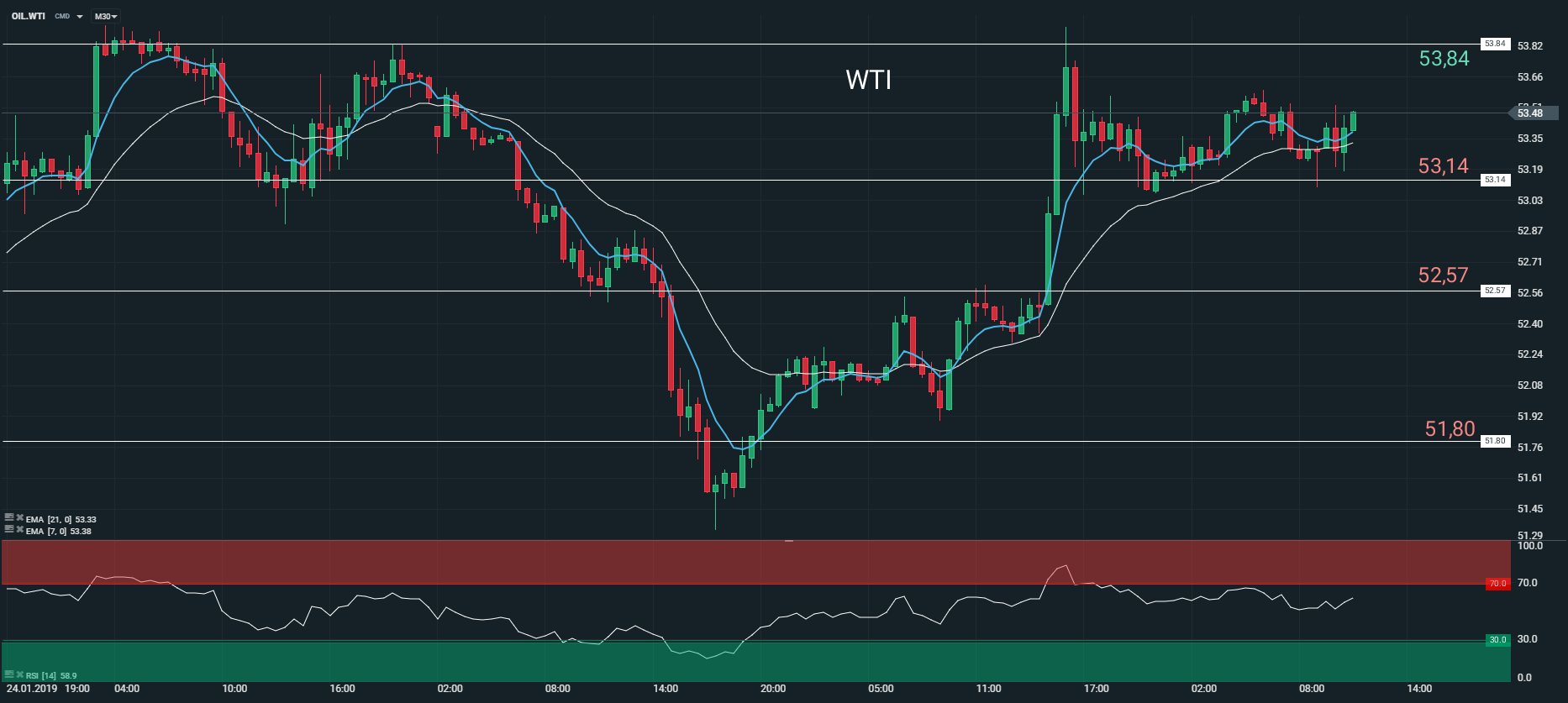 Représentation technique du contrat WTI, en M30