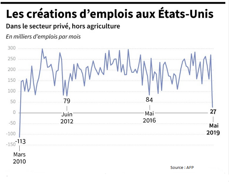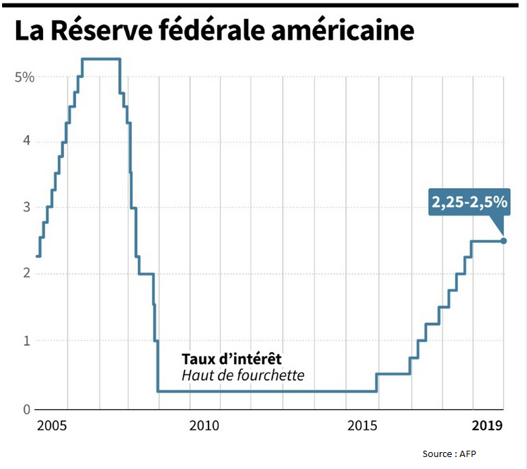 Cependant, les récents discours de J.Powell (Fed), M.Carney (Banque d’Angleterre), et M.Draghi ont permis le rebond des indices boursiers. La posture volontariste du gouverneur de la Fed a stimulé l’appétit des opérateurs financiers pour le risque. Pour le marché, le script est tout déjà écrit : les taux fédéraux (Fedfunds) baisseront d’au moins 50 points de bases d’ici la fin de l’année. Ayant entamé une politique de normalisation depuis 2015, cette dernière possède une marge de manœuvre que sa consœur européenne n’a pas. C’est à partir de cette hypothèse que les investisseurs action anticipent une prolongation de la dynamique haussière initiée depuis le début de l’année. La chute du mois de mai n’étant qu’une correction.
