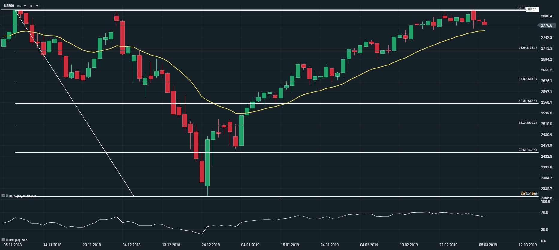 D’un point de vue technique, l’indice S&P500 a retrouvé les niveaux du mois du mois de décembre 2018 (environ 2 820 points). Evidemment, le marché américain évolue en tendance haussière, et ce, malgré les mauvaises nouvelles d’ordre macroéconomiques. Pour l’heure, nous anticipons une poursuite de la trame haussière à court/moyen terme car les prix sont soutenus par la moyenne mobile à 21 périodes et le niveau du RSI (58,8).