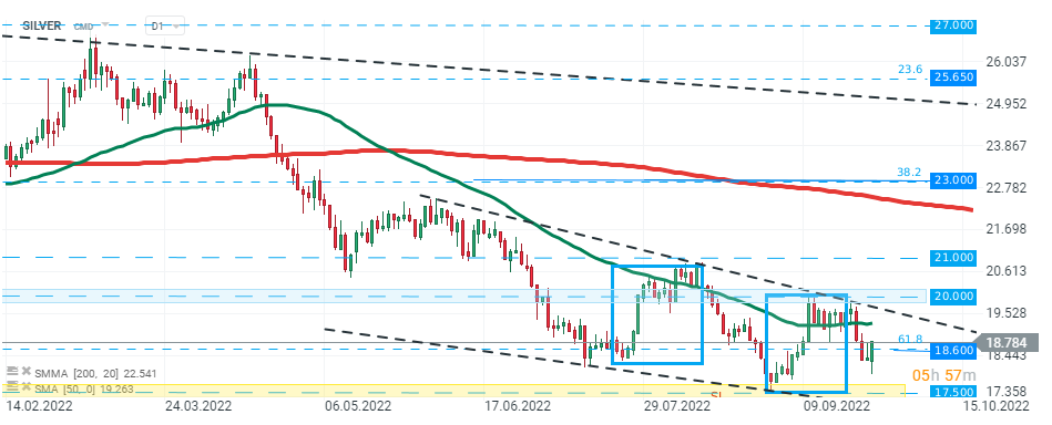 Les métaux précieux tentent de regagner du terrain après la récente vente massive. L'or a bondi au-dessus de 1650 dollars l'once, tandis que l'argent a réussi à effacer les premières pertes et s'échange de 1,5 % plus haut, car la baisse des rendements du Trésor et le sentiment général négatif autour du dollar (l'indice du dollar est tombé sous la barre des 114) ont stimulé la demande de métaux précieux. De plus, certains traders peuvent décider de comptabiliser les bénéfices de leurs positions courtes. Cependant, les investisseurs doivent se rappeler que, un chœur de décideurs de la Fed a indiqué la détermination de la banque centrale à faire ce qui est nécessaire pour faire baisser l'inflation, même au risque d'une récession et d'une nouvelle volatilité du marché, la reprise du mouvement à la baisse est donc toujours probable.