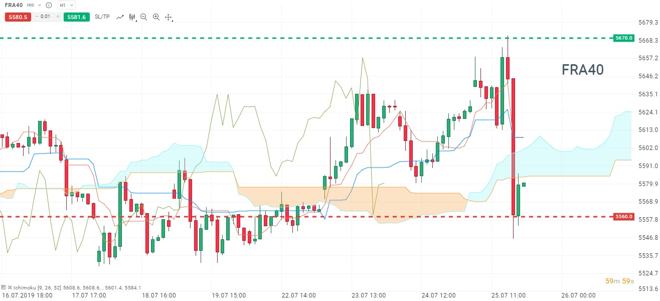 D'un point de vue technique, le CAC40 FRA40) a rebondi sur son support à 5560 points et se dirige vers sa résistance à 5585 points, le bas du nuage H1 selon la terminologie Ichimoku. Si cette résistance est franchie, le prochain niveau à court terme est représenté par les 5608 points, Kijun en pallier, soit les points moyens sur 26 périodes.