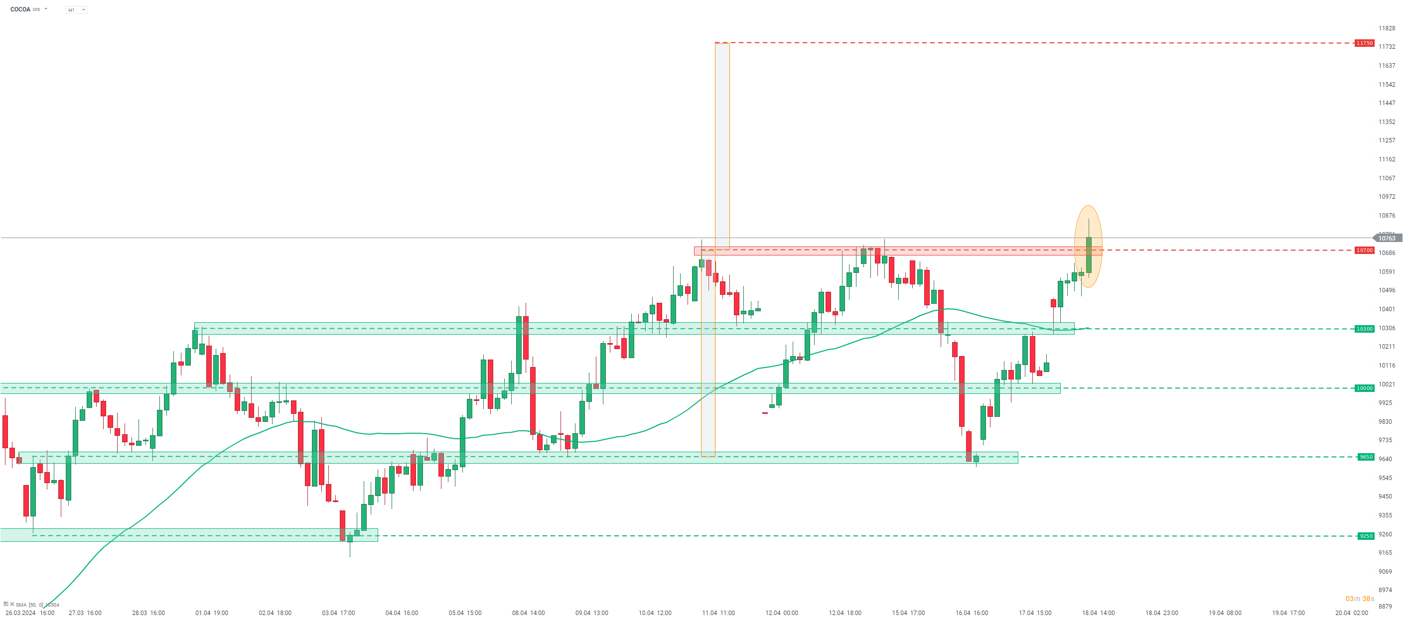 Le cacao progresse de 7% aujourd'hui et s'est entièrement remis de la correction qui a eu lieu en début de semaine. De plus, le prix a dépassé les 10 800 dollars la tonne pour atteindre un nouveau sommet historique. La hausse d'aujourd'hui est alimentée par la publication de solides données de broyage du cacao pour le T1 en provenance d'Asie et d'Europe.