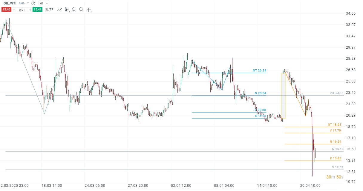 En théorie, le marché ne devrait pas se préoccuper de l'expiration du contrat. Cependant, il y a de fortes chances que la situation se répète à l'avenir. Si les problèmes de stockage à court terme persistent et que les cours du pétrole restent sous pression, il y a de fortes chances à ce que le problème s'amplifie à l'avenir. Le cours du contrat WTI juin 2020 est tombé à 11 dollars le baril à un moment de la séance. Le pire est peut-être encore devant nous, car le grand ETF pétrolier américain - USO - détient environ 20 % des open interest sur le contrat Jun20 et on s'attend à ce qu'il passe aux prochaines échéances entre le 5 et le 8 mai. Les baisses en cours pourraient refléter une tentative de vente massive de USO en début de séance.