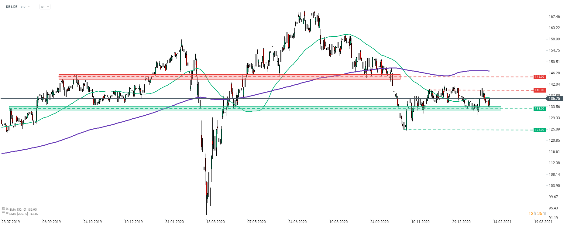 Deutsche Boerse (DB1.DE) enregistre une progression après la publication d'un solide rapport annuel. Le titre a rebondi sur la zone de support à 133 euros. La résistance à court terme se situe à la limite supérieure de la récente fourchette de négociation à court terme (140 euros). Source : xStation5