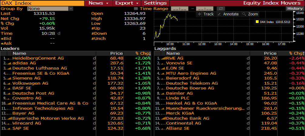 Le DAX après la première heure et demie de négociation. Source : Bloomberg