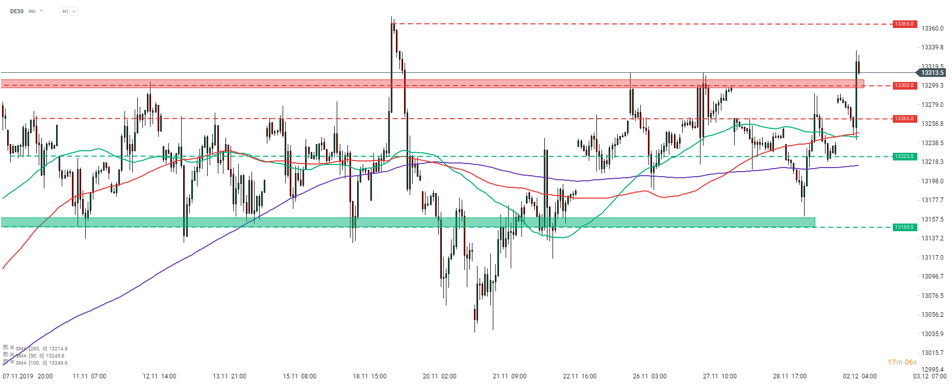 Le DE30 a testé les moyennes mobiles à 50 et 100 séances (lignes vertes et rouges respectivement) au début de la séance européenne. Les acheteurs ont non seulement réussi à défendre ce soutien technique, mais ils ont aussi fait un bond en avant massif. L'indice allemand a dépassé la limite supérieure de la fourchette de négociation à 13300 points et, jusqu'à présent, parvient à rester au-dessus de cette limite. Cependant, il ne faut pas oublier que l'onde de tempête a été assez abrupte et qu'il y a donc des chances qu'une sorte de recul correctif se produise. Dans un tel scénario, les traders devraient se concentrer sur la zone des 13300 points mentionnée ci-dessus, car un nouveau test réussi pourrait confirmer une cassure.