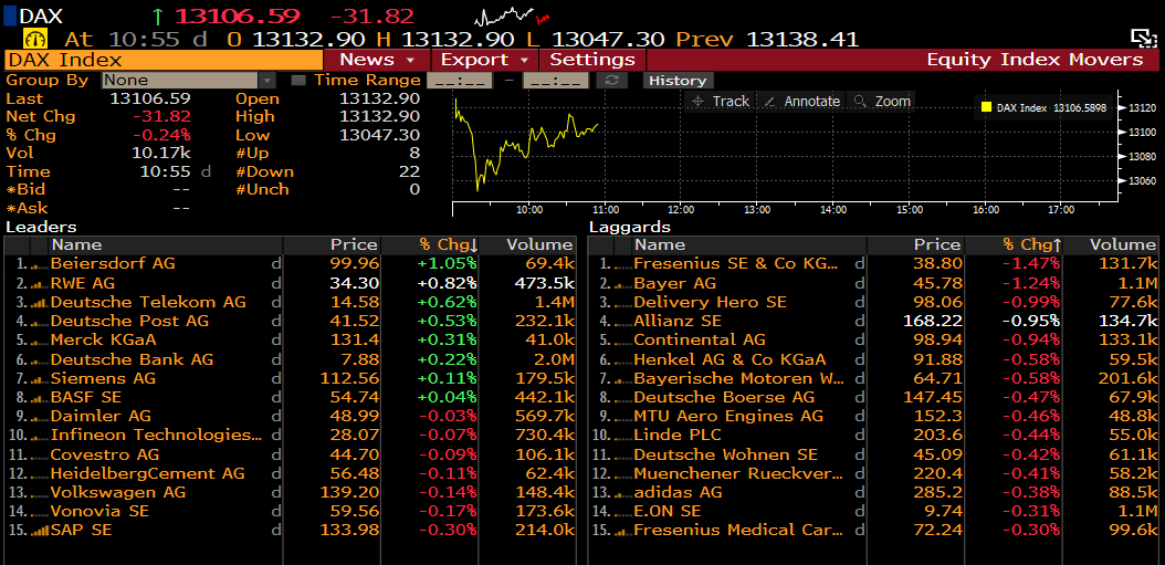 L'indice ZEW du sentiment économique, publié à 11 heures du matin, s'est révélé être une grande déception. L'indice global du mois d'octobre est passé de 77,4 en septembre à 56,1 pts. L'institut ZEW a déclaré que l'optimisme observé en août et en septembre avait diminué.