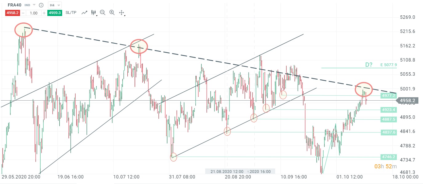 L'indice français (FRA40) a subi un fort repli en première partie de séance et est allé chercher les 4942 pts avant de ressaisir.