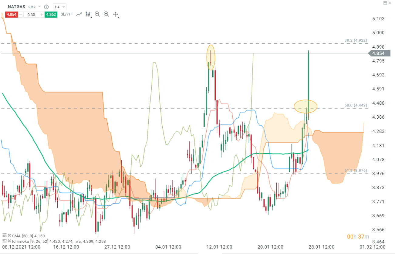 Les prix du NATGAS ont atteint les sommets du 12 janvier après avoir cassé la résistance à 4,500. Source : xStation5