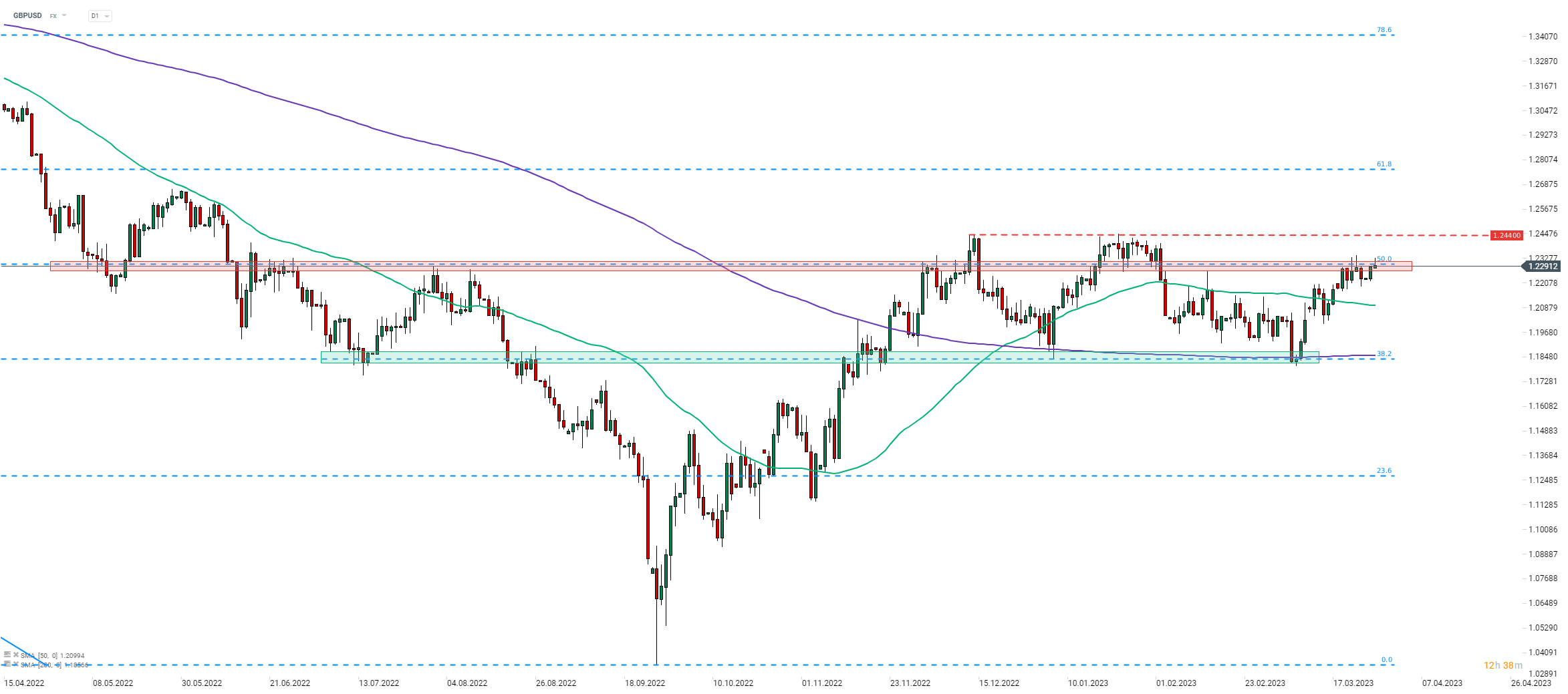 Les commentaires de Bailey aujourd'hui étaient conformes à ses remarques d'hier, lorsqu'il a noté qu'il est peu probable que les régulateurs de taux britanniques soient distraits de la lutte contre l'inflation par les problèmes du système bancaire mondial. Le GBP a connu une certaine faiblesse suite aux commentaires de Bailey aujourd'hui, mais le mouvement immédiatement après les remarques était à peine perceptible. En jetant un œil au graphique GBPUSD à l'intervalle D1, nous pouvons voir que la paire a atteint la zone de résistance marquée par un retracement de 50 % du mouvement à la baisse lancé en juin 2021. La paire a tenté de dépasser la semaine dernière mais a échoué et la tentative d'aujourd'hui semble également être remis en cause. Le GBPUSD a effacé les gains du début de la journée, peignant une longue mèche supérieure sur l'intervalle D1. Cependant, si nous voyions une cassure au-dessus de cette zone, la zone de 1,2440, marquée par les plus hauts locaux des mois précédents, pourrait être la prochaine cible pour les acheteurs. D'autre part, l'échec à casser au-dessus pourrait voir le prix se replier vers la zone de support marquée par un retracement de 38,2 % et une moyenne mobile de 200 sessions (ligne violette).