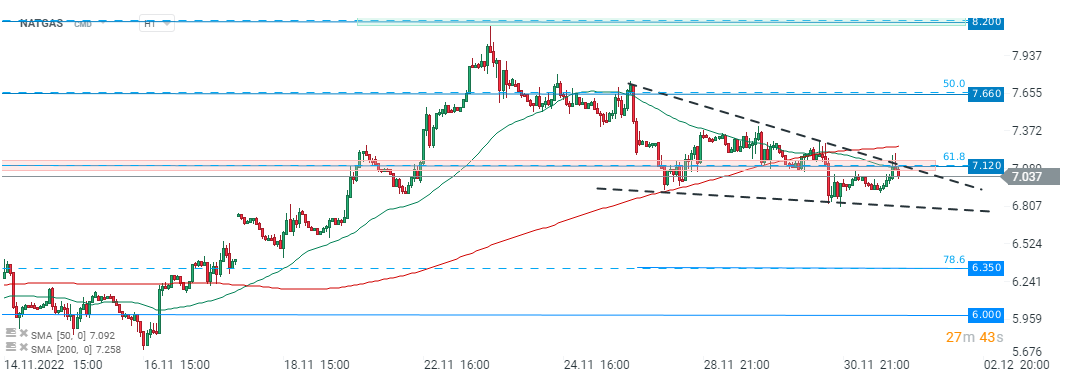 Le prix du NATGAS a légèrement baissé après le rapport de l'EIA. Les acheteurs n'ont pas réussi à dépasser la résistance majeure à 7,12. Source : xStation5